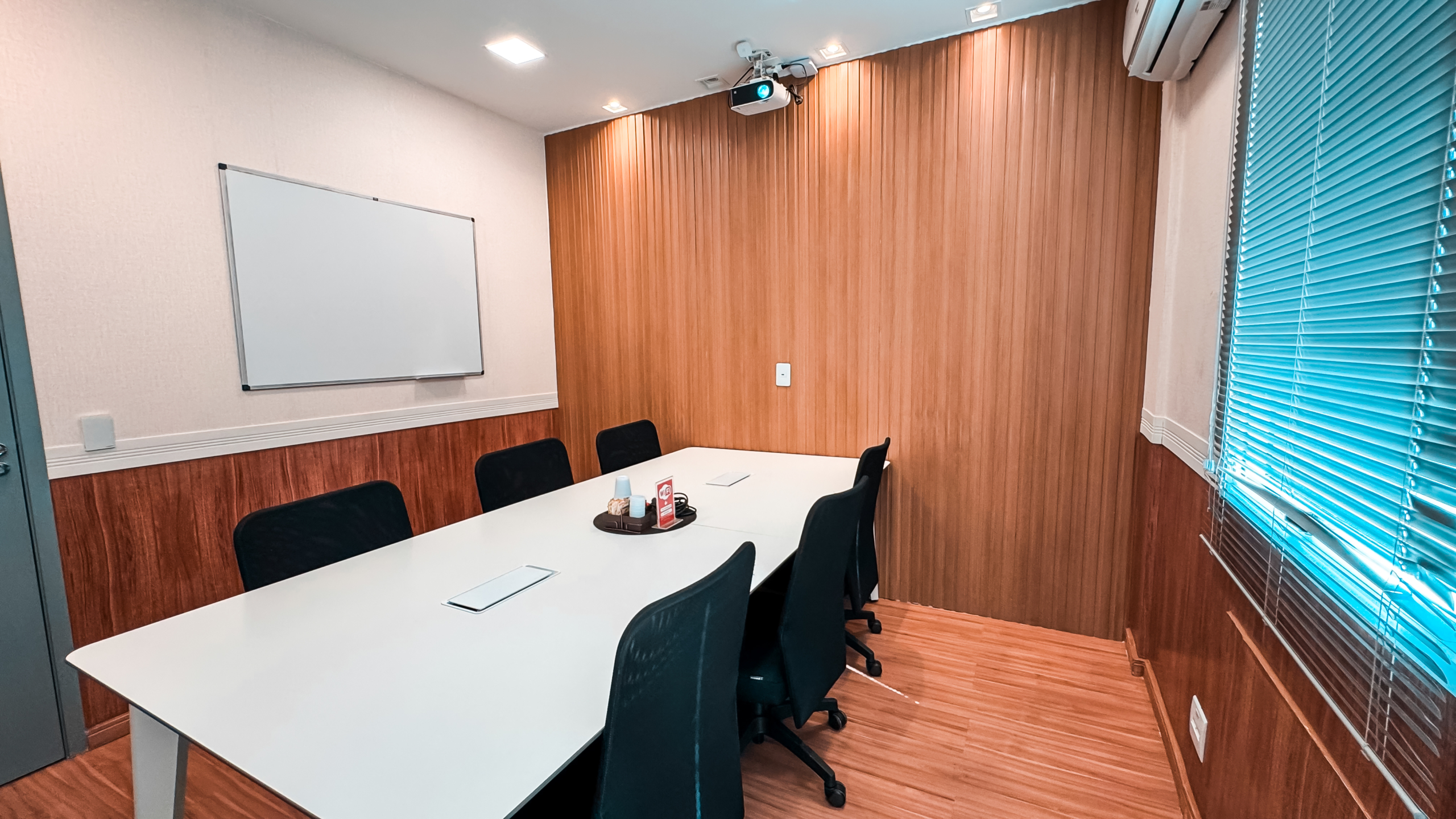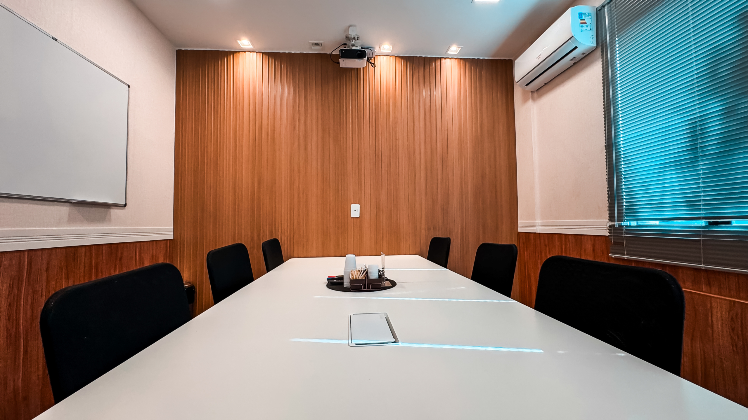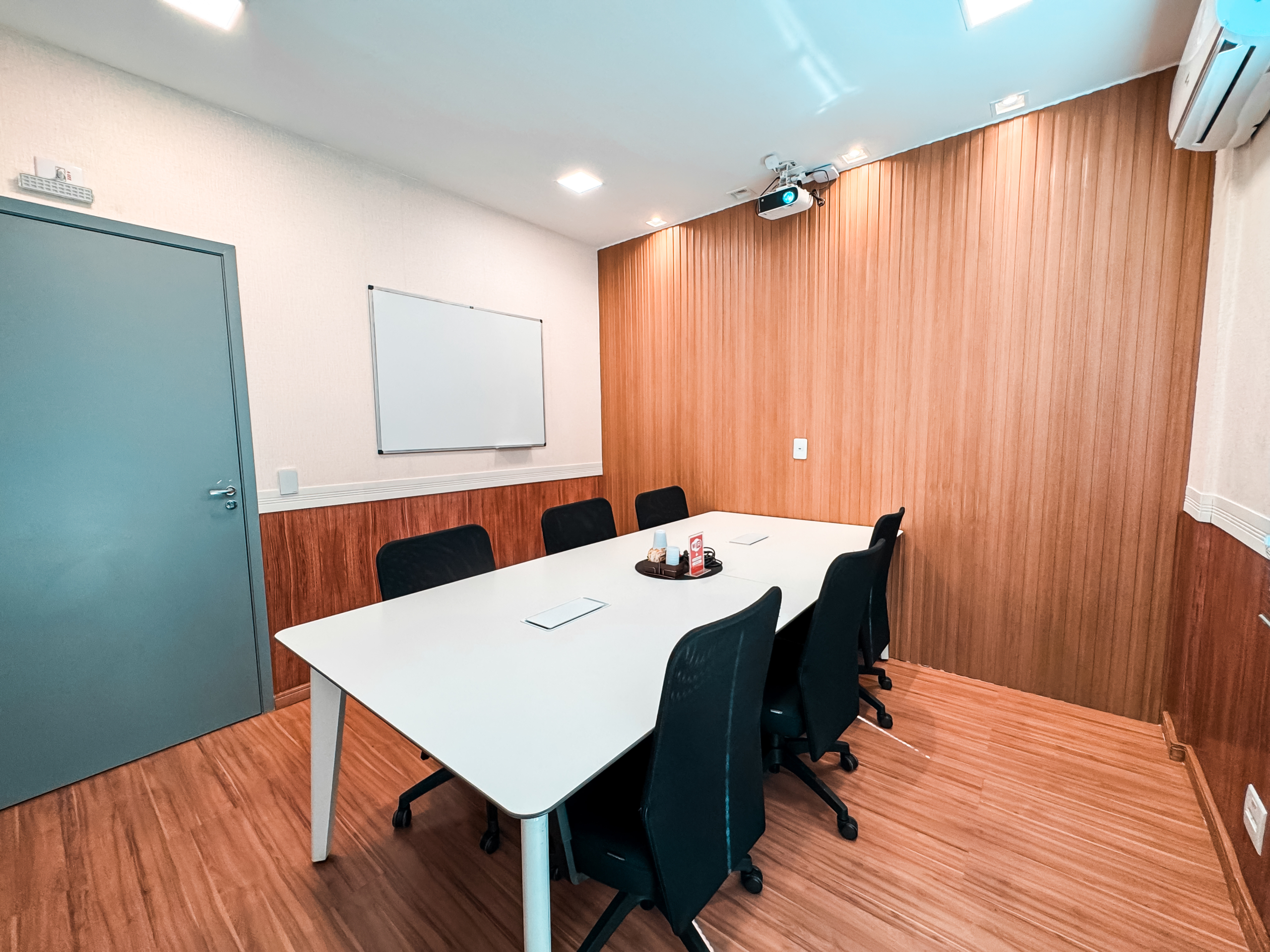 A sala 01 da Unidade 225 acomoda até 06 pessoas de forma confortável, oferecendo versatilidade para diferentes tipos de uso. O espaço pode ser adaptado conforme a necessidade do seu encontro: