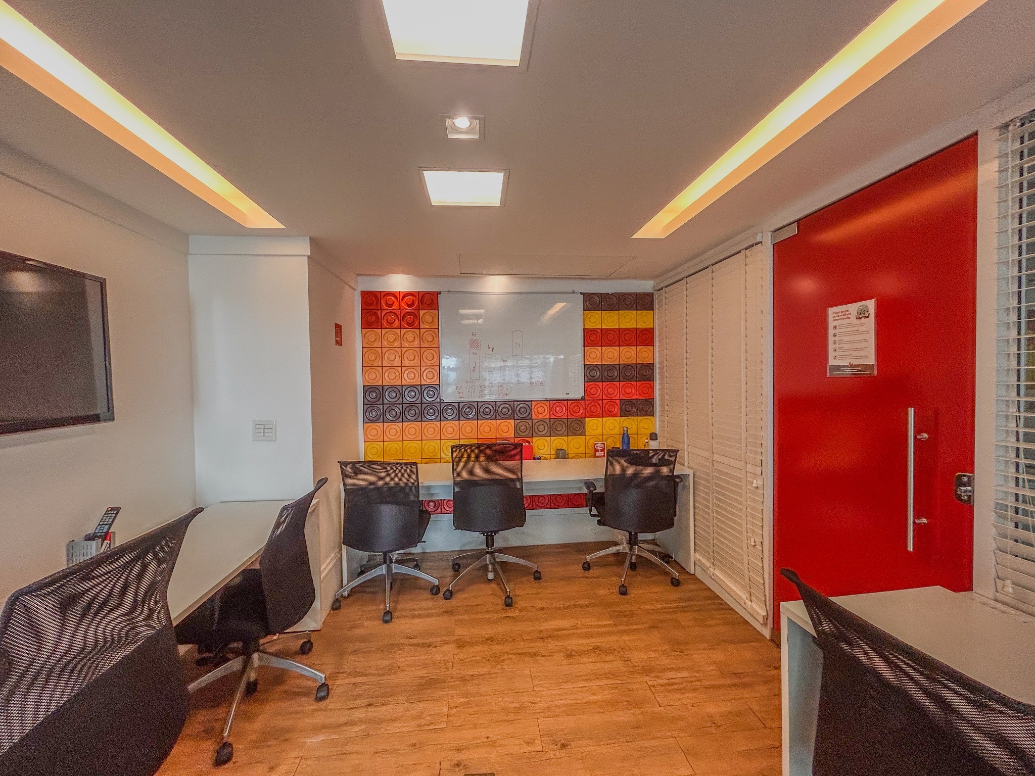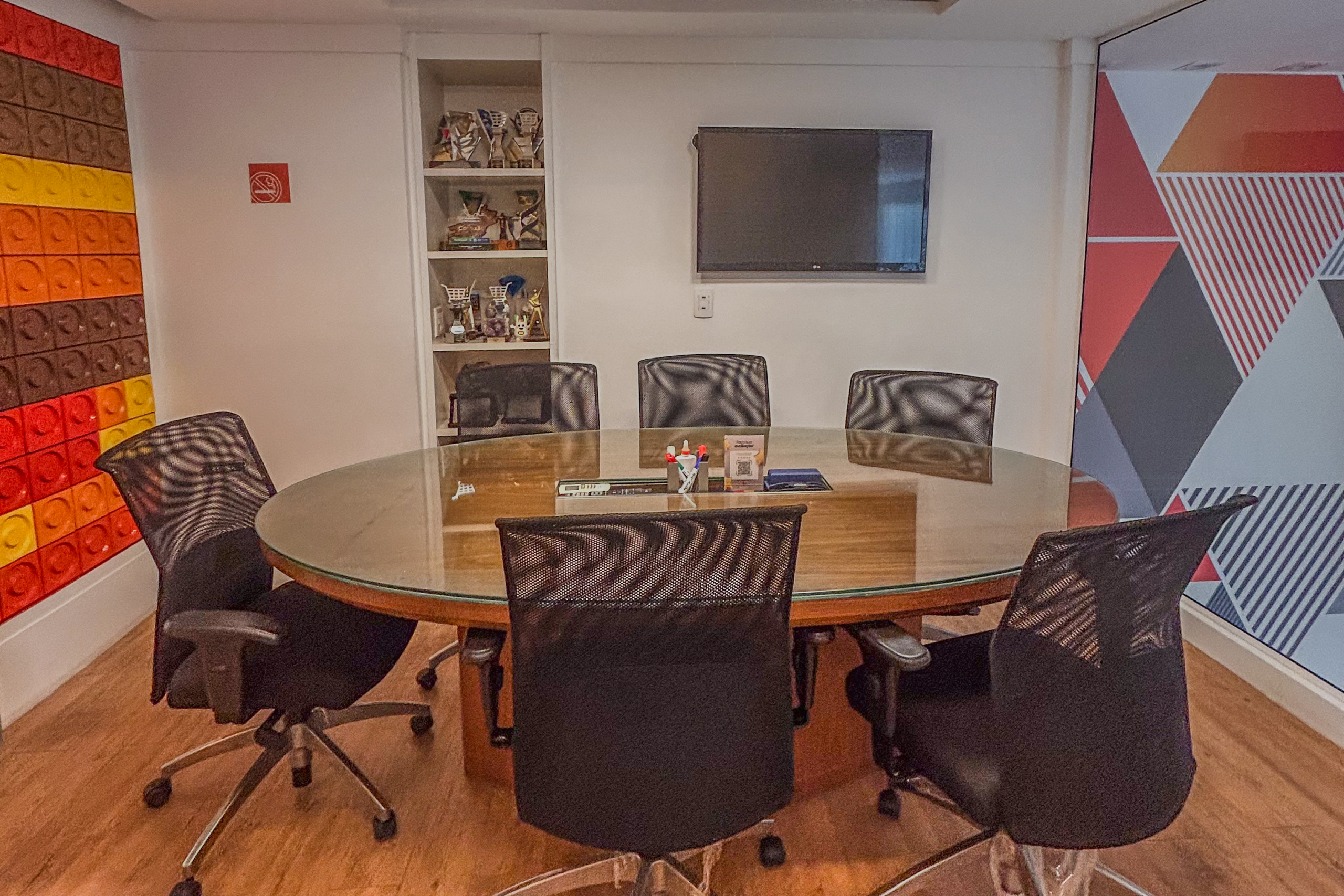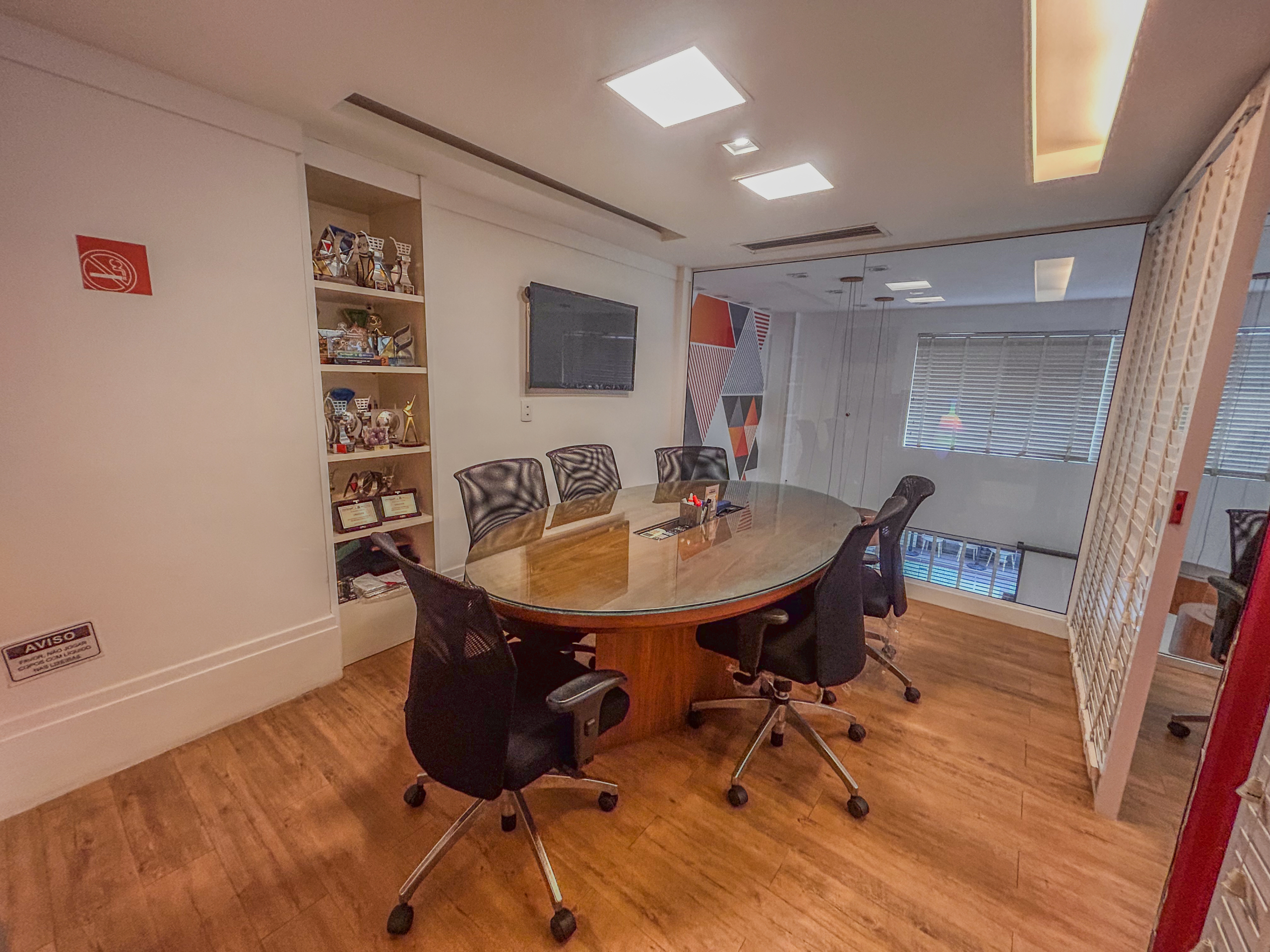 - 01 sala de reunião privativa para até 08 pessoas, equipada com TV de 42 polegadas